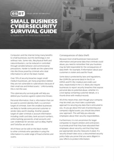 ESET understands perfectly the cyber threats your organization can face and has prepared the definitive free cybersecurity guide for SMBs. Benefit from our insights built on decades of innovation and experience.