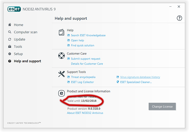 Във всички други случаи трябва да отворите менюто Помощ и поддръжка и да изберете опцията Проверка на валидността на лиценза.