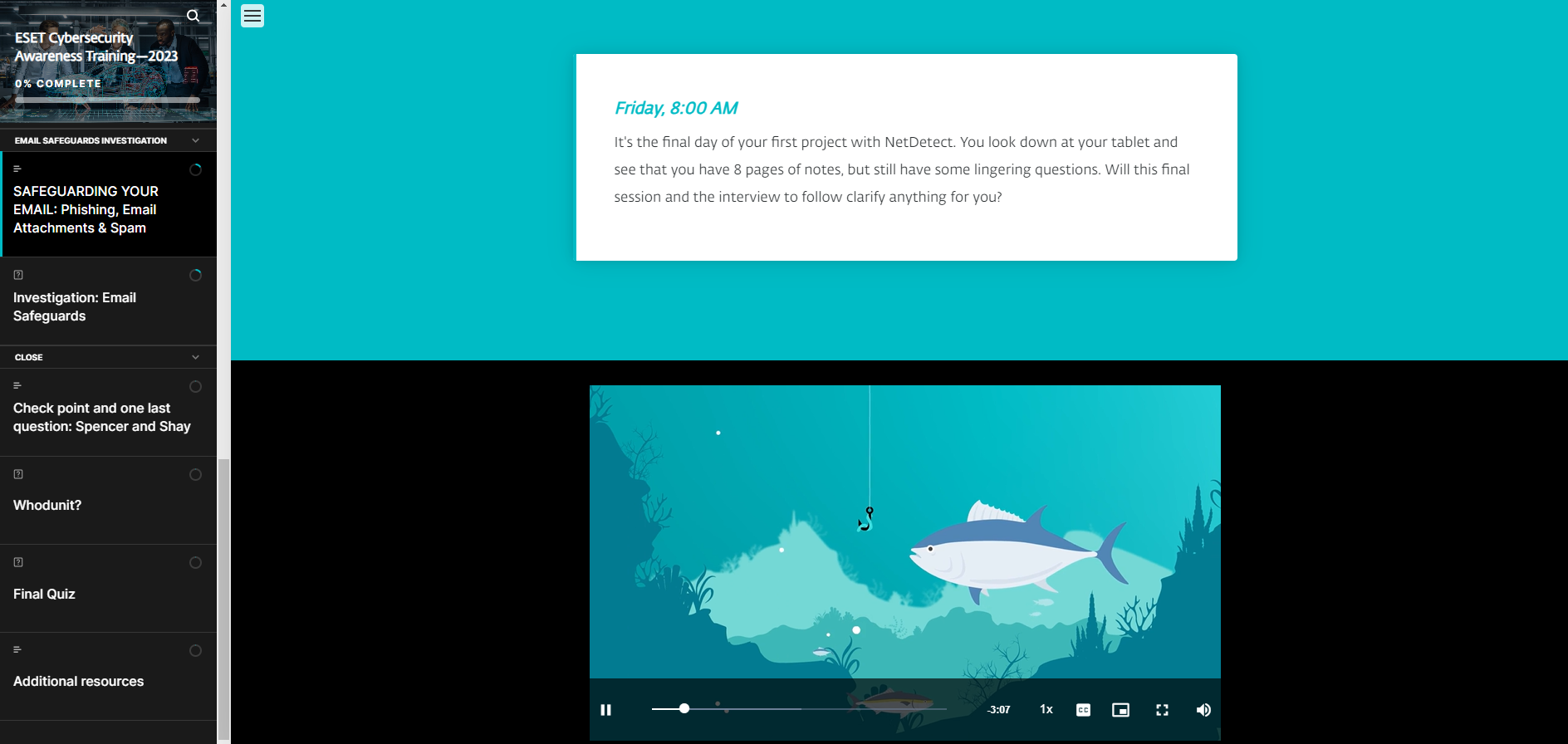 Description: The interface of ESET Cybersecurity Awareness Training.