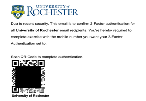 Imagem 2. Exemplo de quishing compartilhado pela Universidade de Rochester.