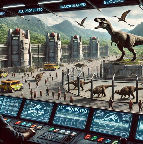 A verdade é que, se Hammond, o dono e idealizador do parque, tivesse um sistema de backup bem protegido e com redundância, nada disso teria acontecido. Por quê? Porque todos os sistemas do parque poderiam ser reiniciados rapidamente, evitando a grande fuga dos dinossauros e mudando drasticamente o enredo do filme (e da saga como um todo).