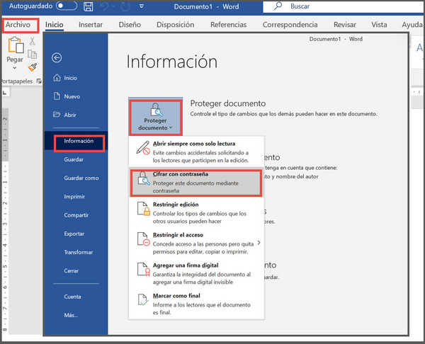 Usando as ferramentas do pacote Microsoft Office: Uma das opções mais simples é recorrer diretamente à criptografia disponível nas ferramentas do Microsoft Office (Word, Excel, etc.) e, em seguida, fazer o upload do arquivo já criptografado para o Google Drive. A opção para criptografia, dependendo da versão da ferramenta, está na aba arquivos, opção de informação (ou info) onde o usuário pode selecionar uma opção que irá dizer "Proteger documento" ou "criptografar" e seguir as instruções indicadas automaticamente pela ferramenta.