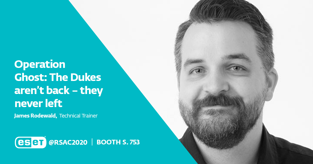 ESET will be presenting at the RSA Conference in San Francisco on February 24 - 27, 2020, where attendees can find a demonstration simulating the malicious mechanism of PolyglotDuke and MiniDuke – the favorite tools of the Dukes at play during Operation Ghost. Find us at Booth #753 in the South Hall.