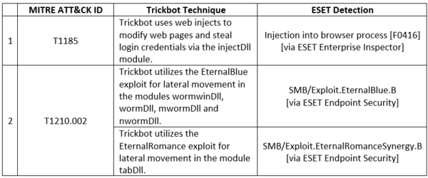 ESET’s Secure Browser technology, known as Banking & Payment Protection in the consumer lineup, blocks the hooking mechanism used by Trickbot’s injectDll plugin. Secure Browser will be available for businesses in the upcoming release of version 8 of ESET Endpoint Security.