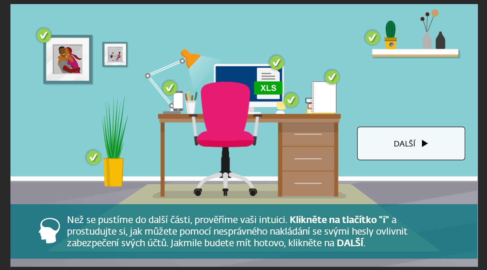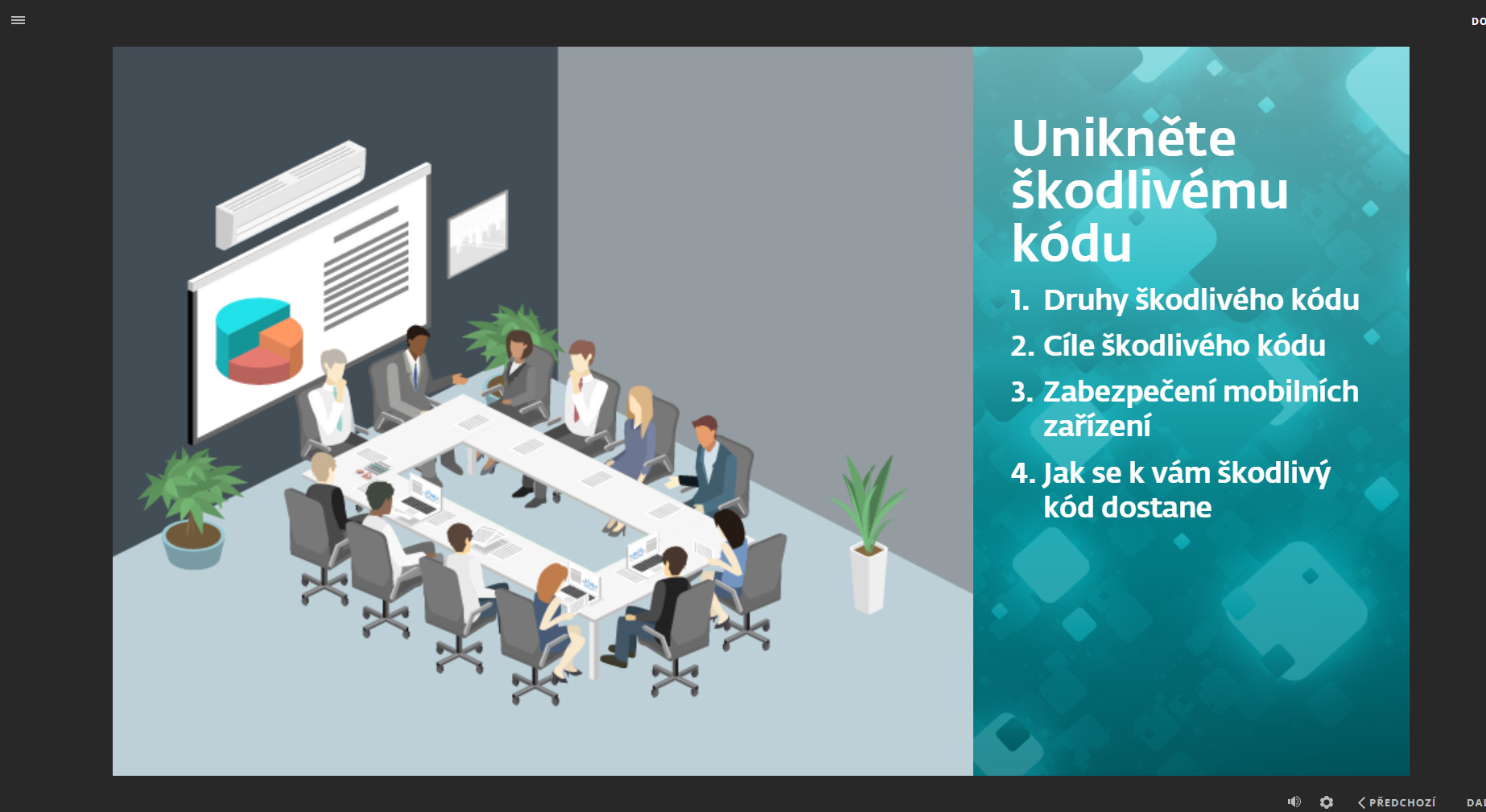 - Školení kybernetické a informační bezpečnosti je ve formě e-learningu s herními prvky.