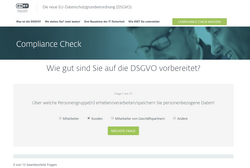 Beim ESET Compliance-Check handelt es sich um einen umfassenden Online-Fragebogen, der bestehende interne Unternehmensrichtlinien, Arbeitsabläufe und (Schutz-)Technologien unter die Lupe nimmt. Der Selbsttest ermittelt beispielsweise, welche Daten tatsächlich verarbeitet werden, auf welchem Stand die Dokumentations- und Nachweispflicht sowie die bisherigen technischen und organisatorischen Maßnahmen sind.