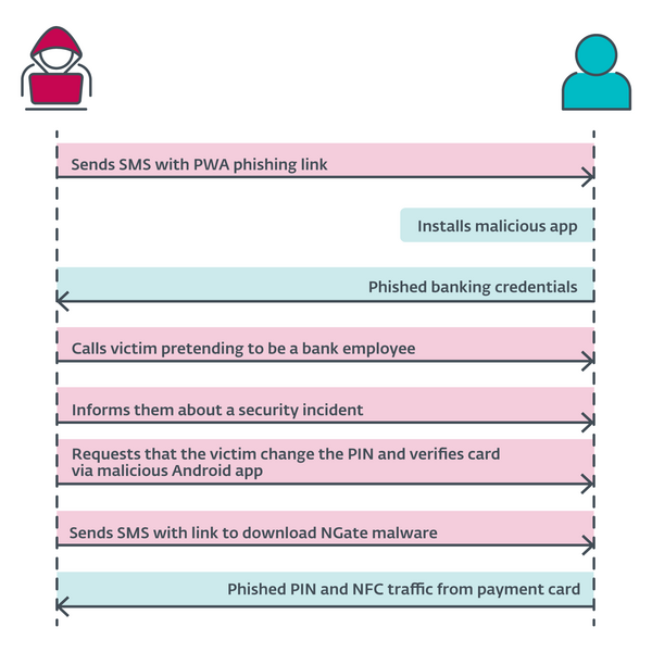 ESET Forscher haben eine Cybercrime-Kampagne aufgedeckt, die Kunden von drei tschechischen Banken ins Visier nahm. Die eingesetzte Malware namens NGate kann die Daten von Zahlungskarten inklusive PIN der Opfer über eine bösartige App, die auf ihren Android-Geräten installiert wurde, an das gerootete Android-Telefon des Angreifers übermitteln. Das Hauptziel dieser Kampagne war es, unautorisierte Geldabhebungen von Geldautomaten aus den Bankkonten der Opfer zu ermöglichen. Dafür wurden Nahfeldkommunikationsdaten (NFC) von den physischen Zahlungskarten der Opfer über ihre kompromittierten Android-Smartphones mithilfe der NGate Android-Malware ans Gerät des Angreifers weitergeleitet. Der Angreifer nutzte diese Daten dann, um Transaktionen am Geldautomaten durchzuführen. Wenn diese Methode scheiterte, hatten die Angreifer einen Plan B, bei dem sie Gelder von den Konten der Opfer auf andere Bankkonten übertrugen.