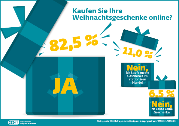 Mit einem Umsatz im Weihnachtsgeschäft von 120,3 Milliarden Euro allein in Deutschland rechnet der Handelsverband Deutschland. Laut einer aktuellen, repräsentativen ESET-Umfrage legt der Online-Handel hierbei weiter zu: Fünf von sechs Verbraucher kaufen die Geschenke für ihre Liebsten in diesem Jahr im Netz. Im Vergleich zur ESET-Umfrage 2020 ist dies ein Zuwachs von 5,4 Prozentpunkte. Die Größte Angst der Online-Käufer sind Identitätsdiebstahl (32,4 Prozent) und der Betrug durch Fake-Shops (31,6 Prozent). Bewertungen und Erfahrungsberichte anderer Kunden sind für über 60 Prozent der Befragten ein wichtiges Merkmal für die Kaufentscheidung. Das beliebteste Endgerät zum Shopping ist der Desktop-PC, den nahezu jeder Dritte Konsument zur Schnäppchenjagd einsetzt.