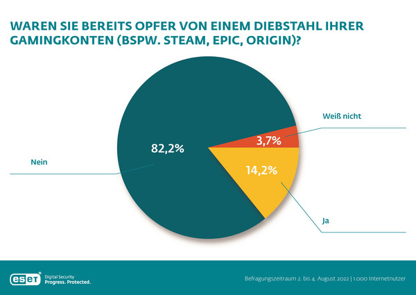 Jeder vierte in der Altersgruppe zwischen 18 und 29 Jahren und jeder fünfte zwischen 30 und 39 Jahren war bereits vom Diebstahl ihres Gamingkontos betroffen. Über alle Altersklassen hinweg hatten lediglich 14,2 Prozent bereits den Verlust ihres Spiele-Accounts zu beklagen.
