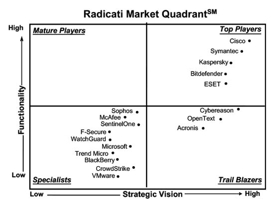 Al reconocer a ESET como mejor ‘Player’, Radicati lo incluye entre "los líderes actuales del mercado con soluciones que ofrecen una gran y amplia funcionalidad, y que además poseen una sólida visión de futuro."
