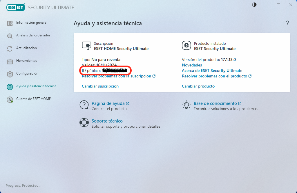 - Haz clic en “Ayuda y asistencia técnica”, y a la derecha podrás encontrar tu ID público.