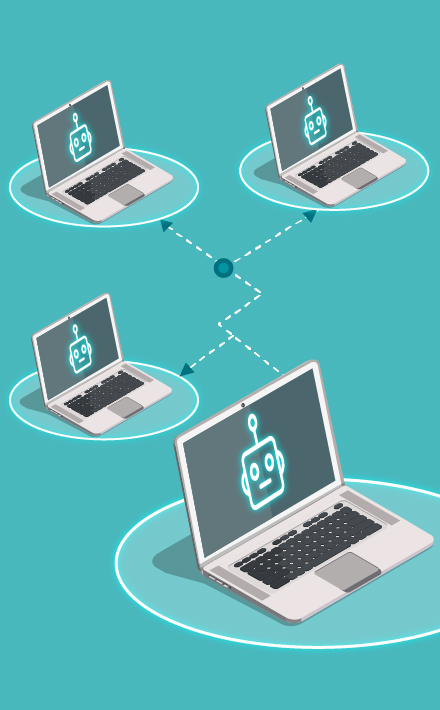 Un botnet est un réseau d'ordinateurs qui ont été infectés par un logiciel malveillant. Les organisations cybercriminelles s'appuient sur des réseaux de botnet pouvant être constitués de milliers, voire de millions d'appareils, pour effectuer différents types d'actions malveillantes à l'insu des propriétaires de ces appareil.