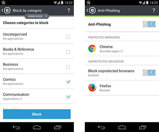 • Application Control - Monitor apps on the device, and block access to specific apps