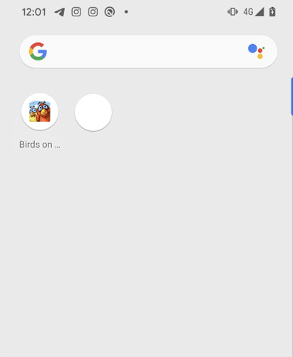 A „Birds on a wire” játék ikonjai: bal oldalon az ártalmatlan app ikonja, mellette a fehér kör a „gonosz iker” ikonja