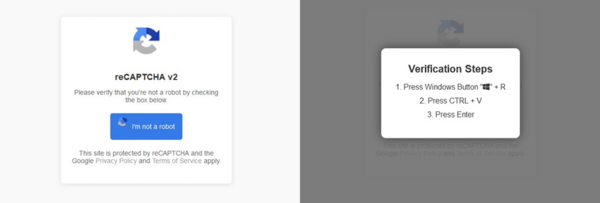Hamis reCAPTCHA üzenet, amely arra utasítja az áldozatot, hogy illesszen be és hajtson végre egy rosszindulatú parancsot az eszközén.