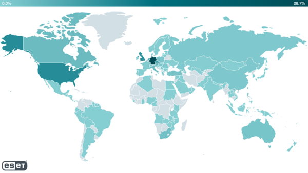 A webshell kód észlelések eloszlása országonként (2021.02.28. és 2021.03.09. között)