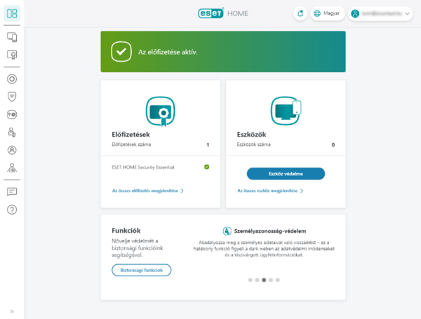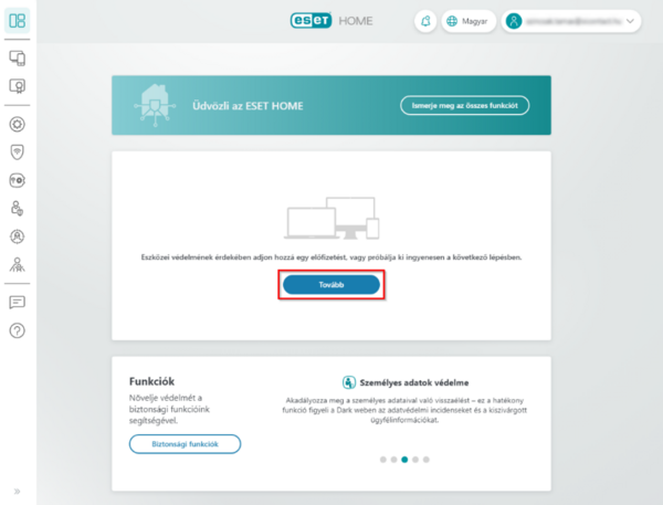 Vagy kattintson a bal oldali menüsávban az ESET HOME-fiók lehetőségre.