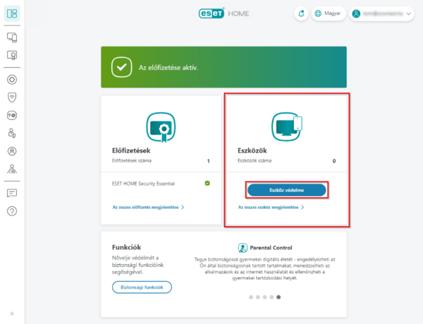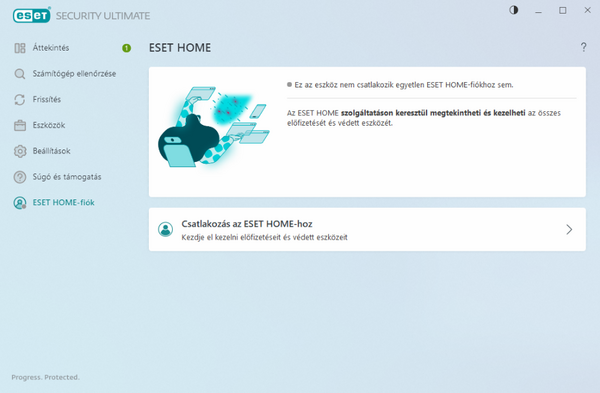 FONTOS! Amennyiben az ESET védelmi megoldása telepítve van eszközére, ugorjon a leírás elejére és csatlakoztassa eszközét fiókjához. Abban az esetben, ha nincs telepítve védelmi megoldás olvasson tovább.