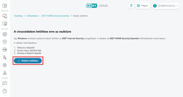 Védelem letöltése az ESET HOME-fiók segítségével