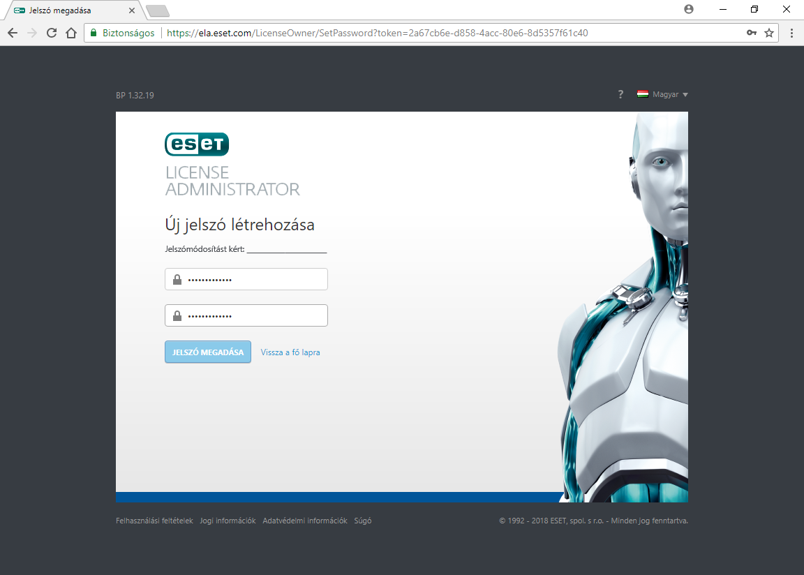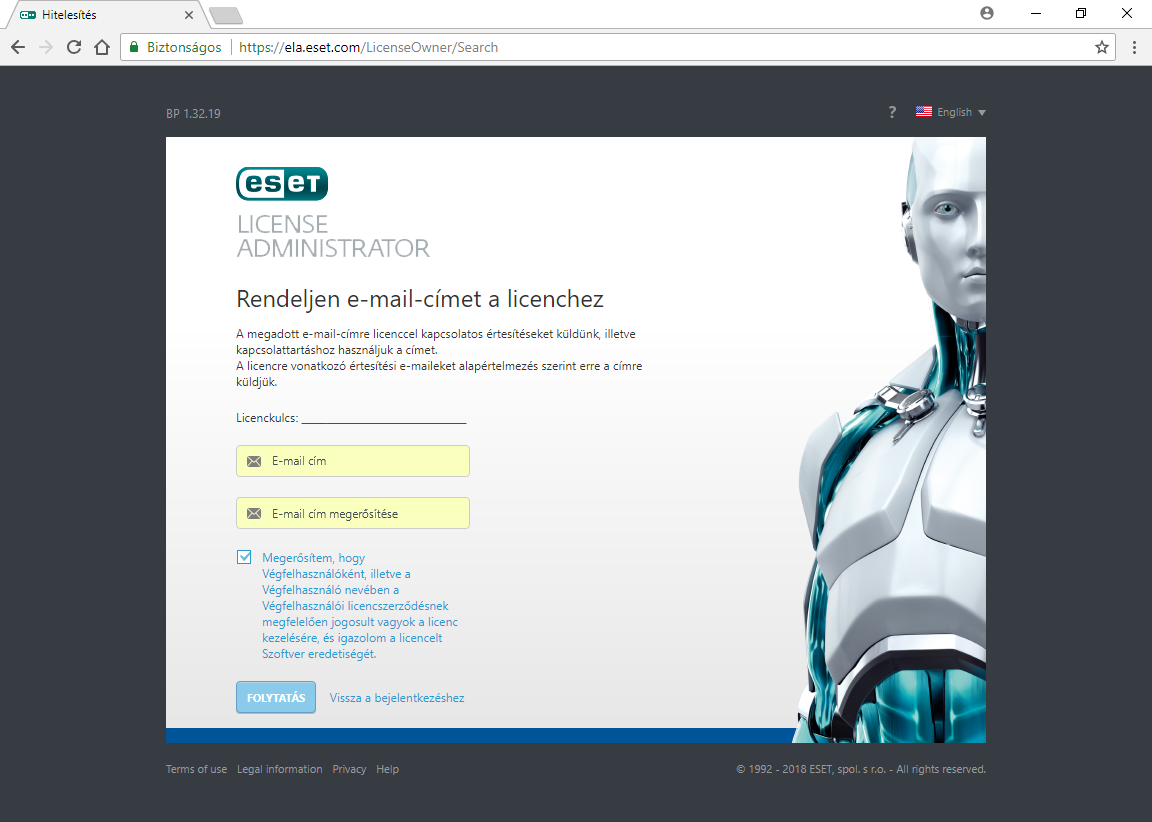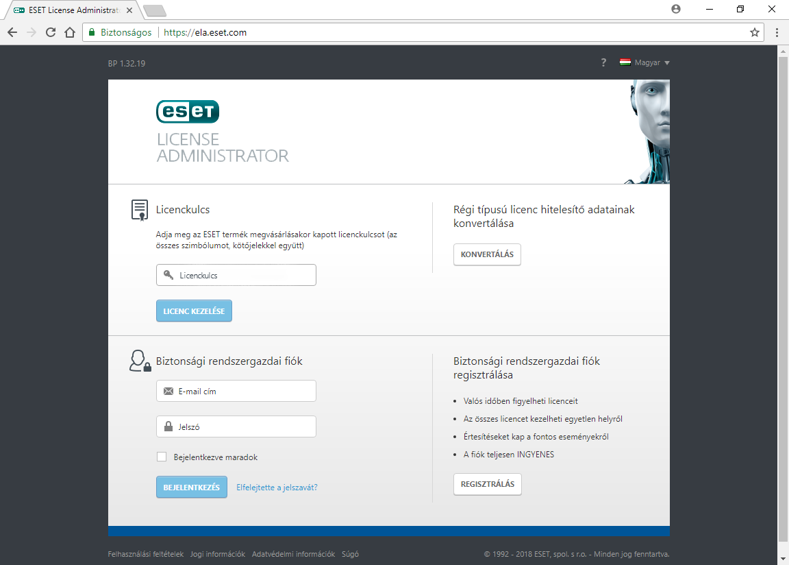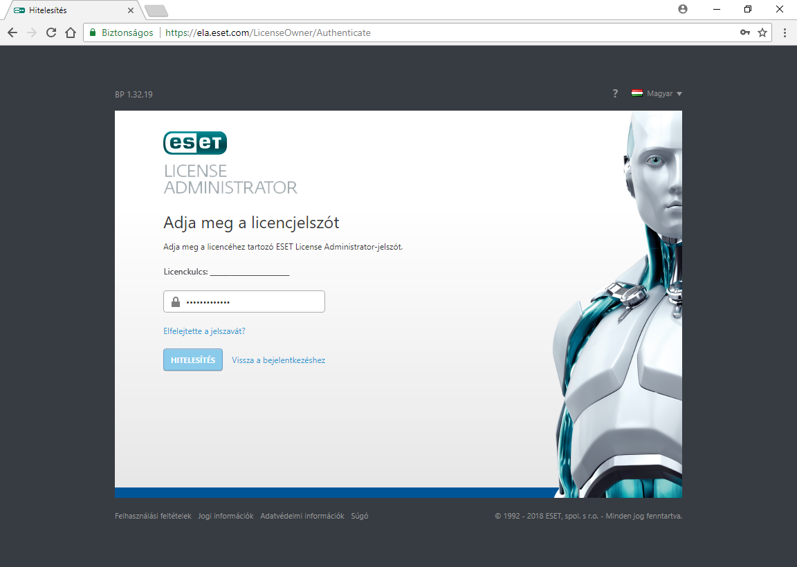 Belépés az ESET License Administrator (ELA) oldalra