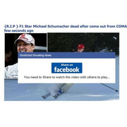חברת ESET מתריעה בבלוג שלה לא ללחוץ על לינקים בפייסבוק שמתיימרים להודיע שנהג המרוצים המוערך, מיכאל שומאכר, נפטר