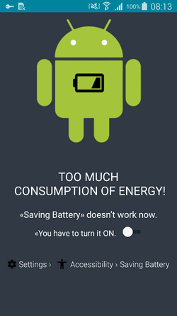 לאחר ההתקנה יופיע מסך הדורש להפעיל מצב "חיסכון סוללה"