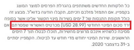 "האותיות הקטנות: דמי מינוי חודשיים על סך 29$"