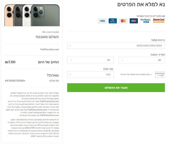 תשלום עבור" דמי משלוח" בכדי לדוג את פרטי האשראי של המותקף