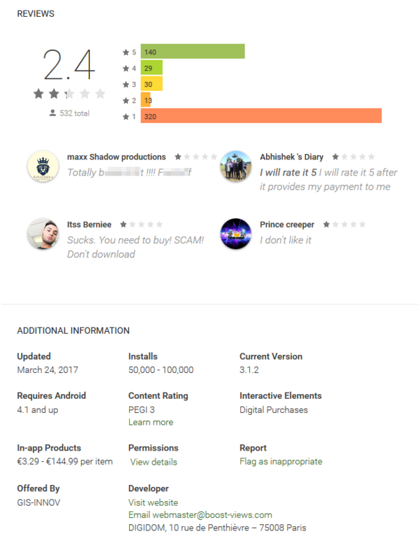 ביקורות שליליות על האפליקציה בגוגל פליי