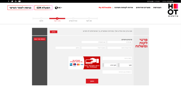 המסך בו מתבקש הקורבן להזין את פרטי כרטיס האשראי