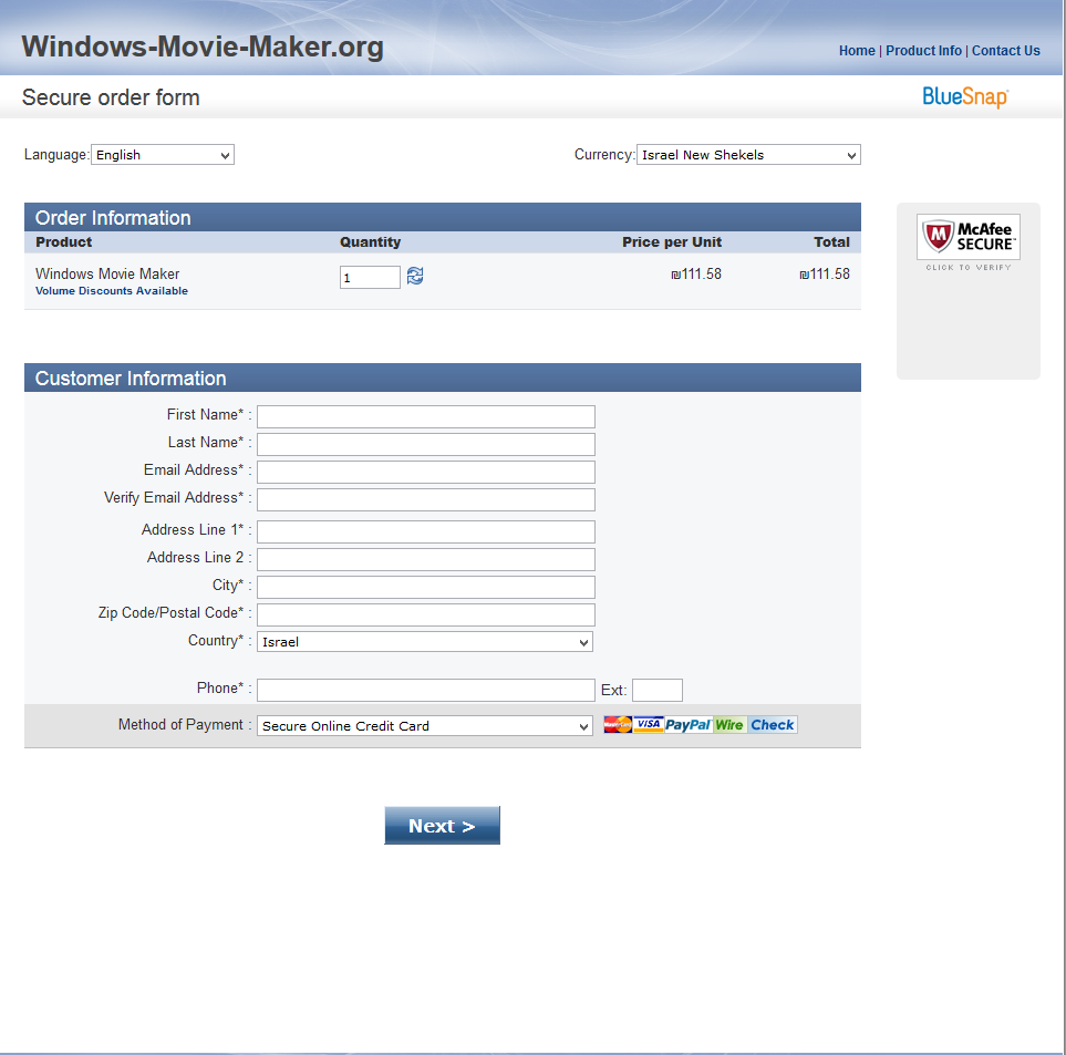 אם המשתמש לוחץ על Register או על Buy Now, הוא יופנה לדף רכישה שאין אליו גישה מהאתר עצמו.