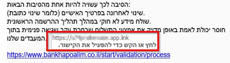 טיפ לבדיקת קישור שקיבלתם במייל: הקישור שבמייל אמנם נראה "תקין" ומשתמש בדומיין של בנק הפועלים. אבל, כאשר מניחים את העכבר עליו ניתן לראות את הכתובת אליה מגיעים, וכאן רואים שמדובר בכלל באתר עם קישור אחר.