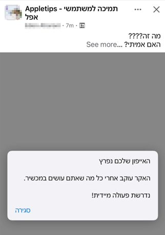מוצג 1. דוגמה להתראה מזויפת