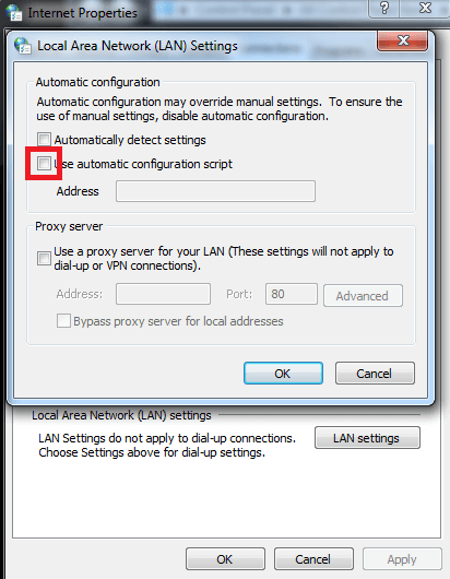 1. Remove the Proxy Automatic Configuration script (PAC):