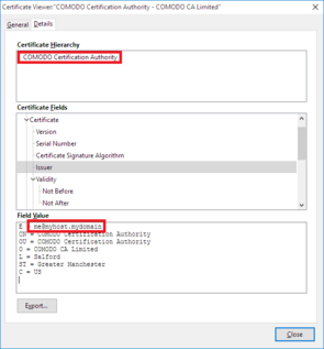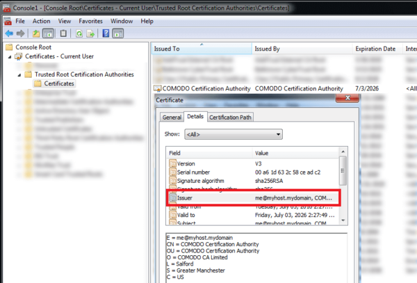 - Issuer: me@myhost.mydomain, COMODO Certification Authority