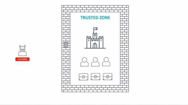 Nel tradizionale modello di sicurezza IT, la posizione di sicurezza di un'organizzazione dovrebbe essere come un castello protetto da un fossato, che rappresenta la rete. In una tale configurazione, è difficile accedere alle risorse di un'organizzazione dall'esterno della rete. Allo stesso tempo, tutti coloro che si trovano all'interno della rete sono considerati attendibili per impostazione predefinita. Il problema con questo approccio, tuttavia, è che una volta che un utente malintenzionato ottiene l'accesso alla rete, e quindi diventa affidabile per impostazione predefinita, tutte le risorse dell'organizzazione sono prote ad essere esfiltrate.