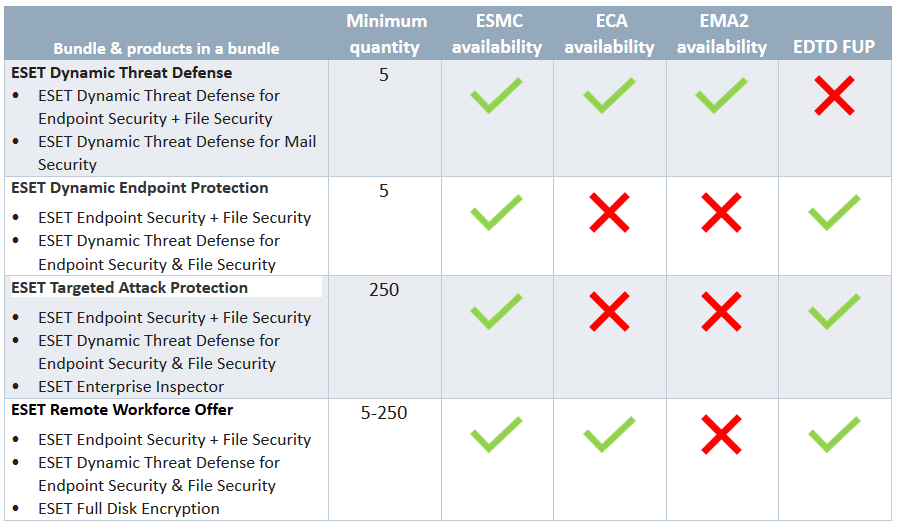 Accessibile tramite ESET Security Management Center o ESET Cloud Administrator, anche i team di sicurezza che gestiscono un numero inferiore di postazioni saranno in grado di bloccare la funzionalità EDTD di base e tenere sotto controllo i costi tramite l'acquisto di nuovi tipi di bundle. I pacchetti, a partire dalla fornitura di sole 5 postazioni, sono adatti per aiutare le aziende che si occupano delle loro sfide di lavoro a remoto. Adatto per gli amministratori di "flotte" più piccole di computer remoti, questo pacchetto taglia alcune funzioni relative alla segnalazione comportamentale, ma mantiene le sue capacità difensive e lo stato di risposta dei file (risultati EDTD).