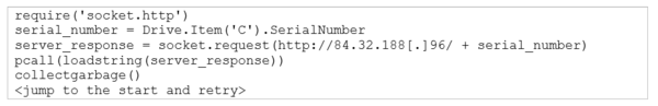 C:ドライブのシリアル番号を取得し、User-Agent LuaSocket 2.0.2を使用して http://<c&c>/<serial_number>にGETリクエストを送信します。その後で、返信します。これは、SunSeedがC&Cサーバーから追加のLuaスクリプトを受け取ることを目的としています。ESETは、installとmoveの2つの追加のスクリプトを発見しています。</serial_number></c&c>