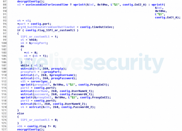 安全を確保する設計がされており、構成は暗号化されずにメモリに残ることはありません。ダウンローダーは、構成ファイルの要素を使用する必要がある場合には毎回、構成ファイルを復号化し、その要素を取得して、ファイルを再度暗号化します。