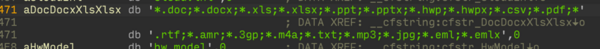 分析した検体で見つかったファイル拡張子のデフォルトリスト(図7)から、このオペレータは標的ユーザーのMacからドキュメント、スプレッドシート、音声録音ファイル、写真、メールメッセージに関心があることがわかります。このオペレータが収集していた特異なファイル形式として、音声圧縮用に特別に設計された音声コーデックであるAdaptive Multi-Rate(拡張子 .amrと.3ga)を使用した音声録音も含まれていました。このリストにあるファイル拡張子には、韓国語圏のユーザーに人気のあるワードプロセッサであるHangul Office(現Hancom Office)のドキュメントである.hwpと.hwpxファイルも含まれていました。