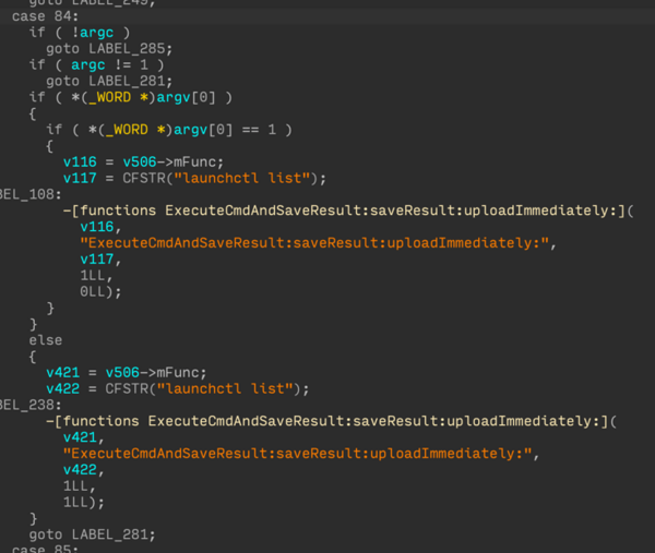 図11はID 84のコマンドを示しています。このコマンドはlaunchdによってロードされたすべてのジョブを一覧表示し、その結果を引数の値に応じて今すぐまたは後でアップロードします。