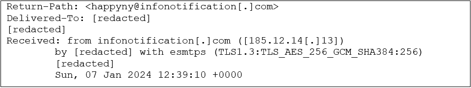 これらのメールは、happyny@infonotification[.]comから送信されています。これはメールヘッダーで確認できます。