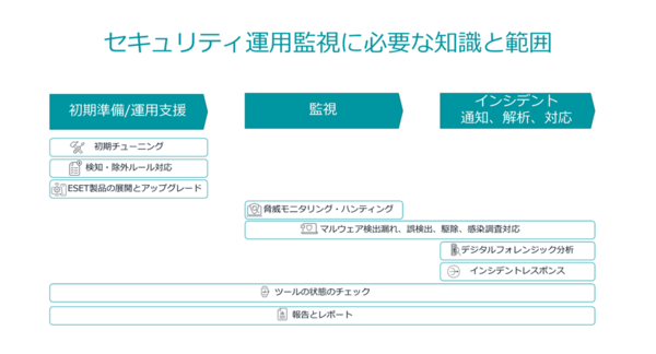 セキュリティ運用監視を行うには、セキュリティ運用の知識、スキルを持つ人材の関与が不可欠です。