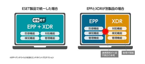 ESETのXDR、EPPで統合的に運用することで、不必要な連携開発や難易度の高い相関分析設定から解放され、高品質な検知環境を提供します。