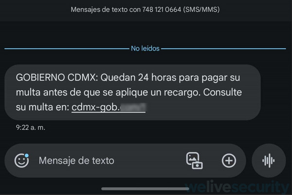 En el repaso de ejemplos reales, no podía faltar uno vinculado a organismos de gobierno, ya que representan otro señuelo muy empleado por el cibercrimen para que sus ataques de phishing sean efectivos. En este caso, se trata de mensajes de texto falsos (smishing), que simulan ser comunicaciones oficiales del gobierno local para robar información sensible a los ciudadanos.