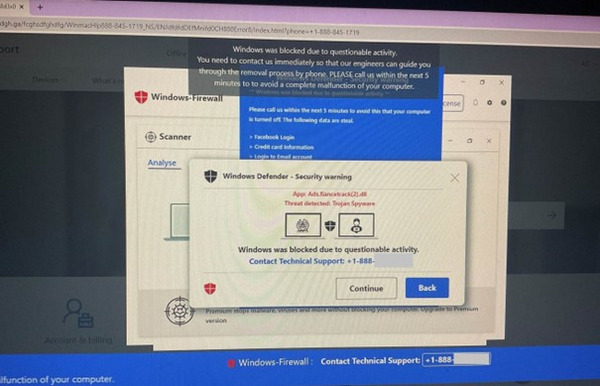 El scareware como estafa puede venir en forma de mensajes no solicitados, ventanas emergentes o anuncios en redes sociales que asustan a los usuarios para que instalen software no deseado y, a menudo, dañino. El scareware suele combinarse con Estafas de soporte técnico.