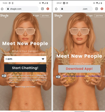 A principios de 2023, los investigadores de ESET publicaron un artículo sobre StrongPity, una campaña de malware que difundió una versión troyanizada de la popular aplicación Telegram para Android. Fue reempaquetada y presentada como "la" aplicación para el servicio de videochat Shagle, a pesar de que Shagle no tiene una aplicación oficial. La aplicación falsa se distribuyó desde un sitio web imitador de Shagle.