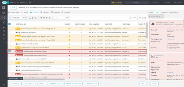 En el caso de ESET, hay varios ejemplos relevantes: las muestras de ransomware Cl0p y LockBit, junto con otras muestras adicionales, habrían sido bloqueadas en la primera ejecución de la evaluación. Si bien esto queda enmascarado por el foco de la evaluación en ESET Inspect, en realidad fue ESET LiveGuard Advanced, una capa tecnológica clave dentro de la plataforma ESET PROTECT, la responsable de la detección y el bloqueo inicial de estas muestras de ransomware. El malware restante habría sido bloqueado en la segunda ejecución. En el contexto real, esto es una muy buena noticia, ya que significa que los clientes se benefician de una protección eficaz y oportuna frente a las amenazas.