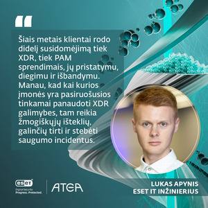 Jam pritaria ir „ESET Lietuva“ IT saugumo inžinierius Lukas Apynis: „Šiais metais klientai rodo didelį susidomėjimą tiek XDR, tiek PAM sprendimais, jų pristatymu, diegimu ir išbandymu. Manau, kad kai kurios įmonės yra pasiruošusios tinkamai panaudoti XDR galimybes, tam reikia žmogiškųjų išteklių, galinčių tirti ir stebėti saugumo incidentus“, – komentuoja L. Apynis.