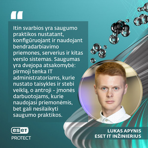 Jam antrina V. Bakas - „debesijos paslaugos yra šiais laikais labai aktualu, nes vis daugiau įmonių mokosi iš Covid19 situacijos ir stengiasi dirbti nuotoliniu arba hibridiniu būdu. Vis daugiau įmonių kelia savo duomenis ir paslaugas į debesiją kaip M365. Ypač šiais metais buvo stipriai pajaučiama, kad daug įmonių nori migruoti savo visas paslaugas į vieną debesijos platformą, kad būtų paprasčiau ir saugiau dirbti. Tačiau nėra nieko tobulo ir kiekvieną paslaugą būtina apsaugoti, kad įmonė galėtų jaustis užtikrintai, dirbant savo debesijos aplinkoje. Pagrindinis tikslas - sumažinti rizikas su ESET pagalba ir ramiai dirbti, nesukant galvos dėl galimos atakos iš hakerių“.